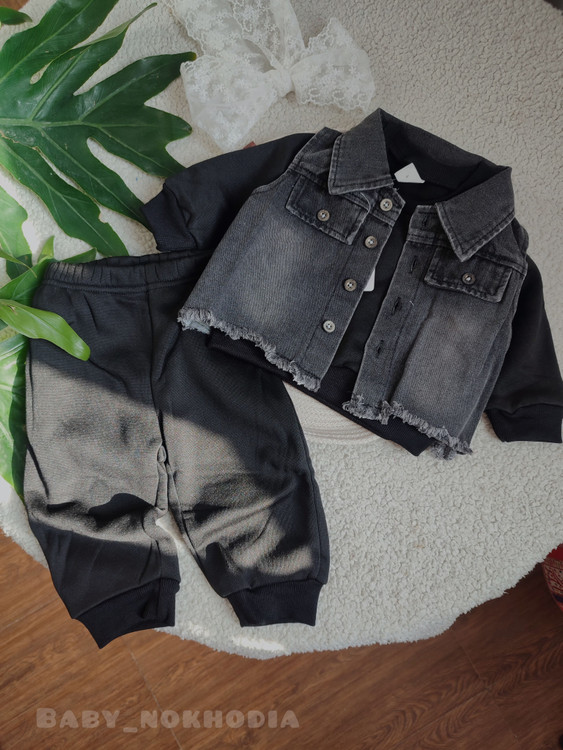 ست سه تیکه بچگانه متشکل از پیراهن و شلوار داخل کرک به اضافه ژیله جین اورجینال